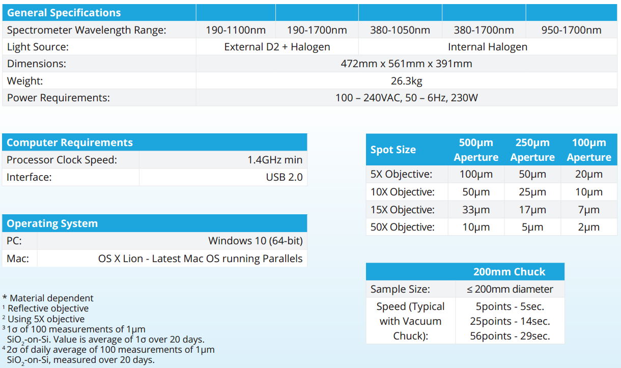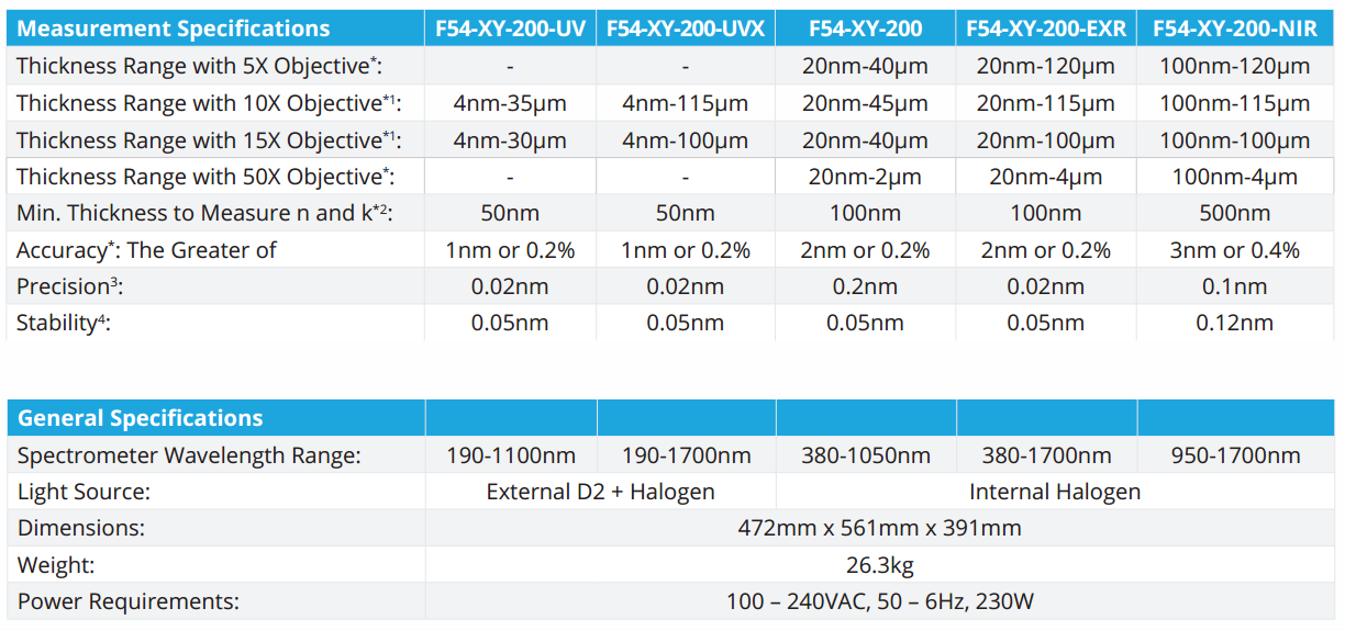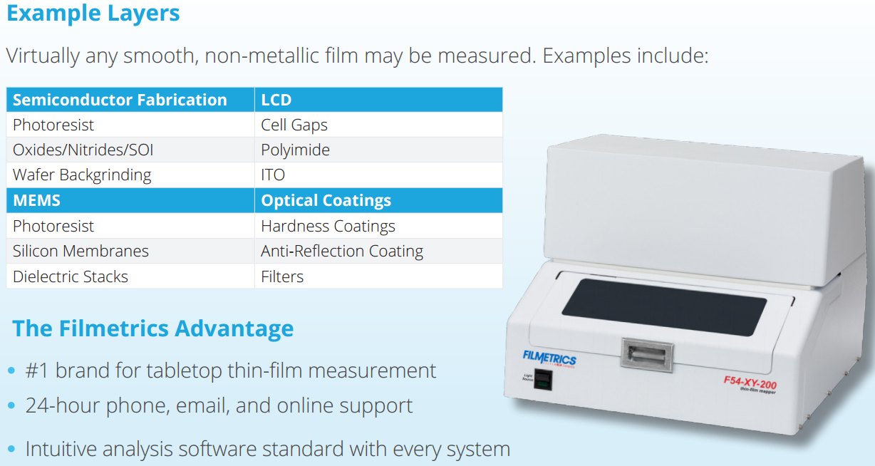 F54-XY-200設(shè)備測量行程為200mm*200mm,可對200mm*200mm尺寸的樣品進(jìn)行全區(qū)域薄膜厚度測量。XY軸可自動移動到用戶指定量測位置,減少手動移動樣品帶來的污染;