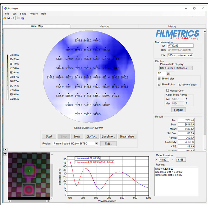 用戶僅需在軟件界面設(shè)置好需要量測區(qū)域的位置坐標(biāo),設(shè)備即可自動完成多點薄膜厚度量測。