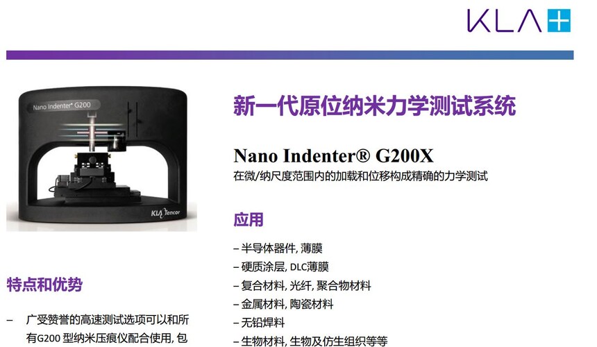 Nano Indenter? G200系統(tǒng)是一種準(zhǔn)確,靈活,使用方便的納米級(jí)機(jī)械測(cè)試儀器。 G200測(cè)量楊氏模量和硬度,包括從納米到毫米的六個(gè)數(shù)量級(jí)的形變測(cè)量。 該系統(tǒng)還可以測(cè)量聚合物,凝膠和生物組織的復(fù)數(shù)模量以及薄金屬膜的蠕變響應(yīng)(應(yīng)變率靈敏度)。 模塊化選項(xiàng)可適用于各種應(yīng)用:頻率特定測(cè)試,定量刮擦和磨損測(cè)試,集成的基于探頭的成像,高溫納米壓痕測(cè)試,擴(kuò)展負(fù)載容量高達(dá)10N和自定義測(cè)試。
