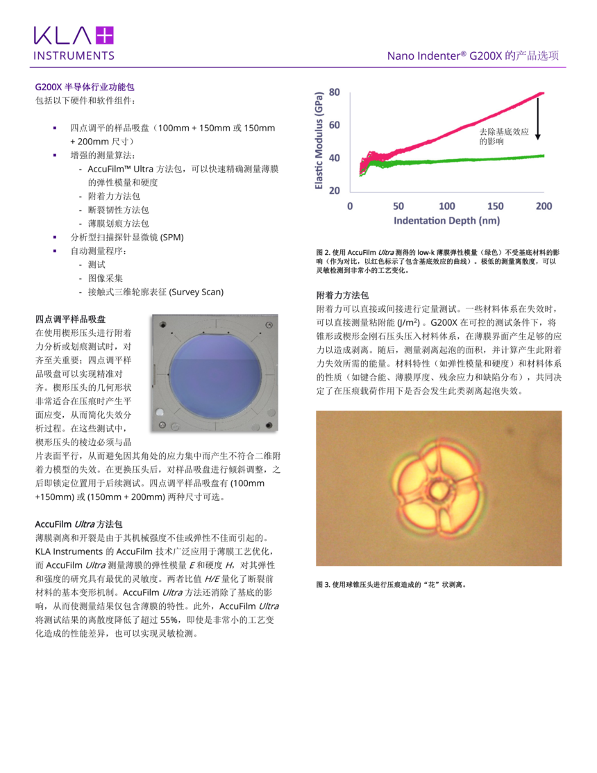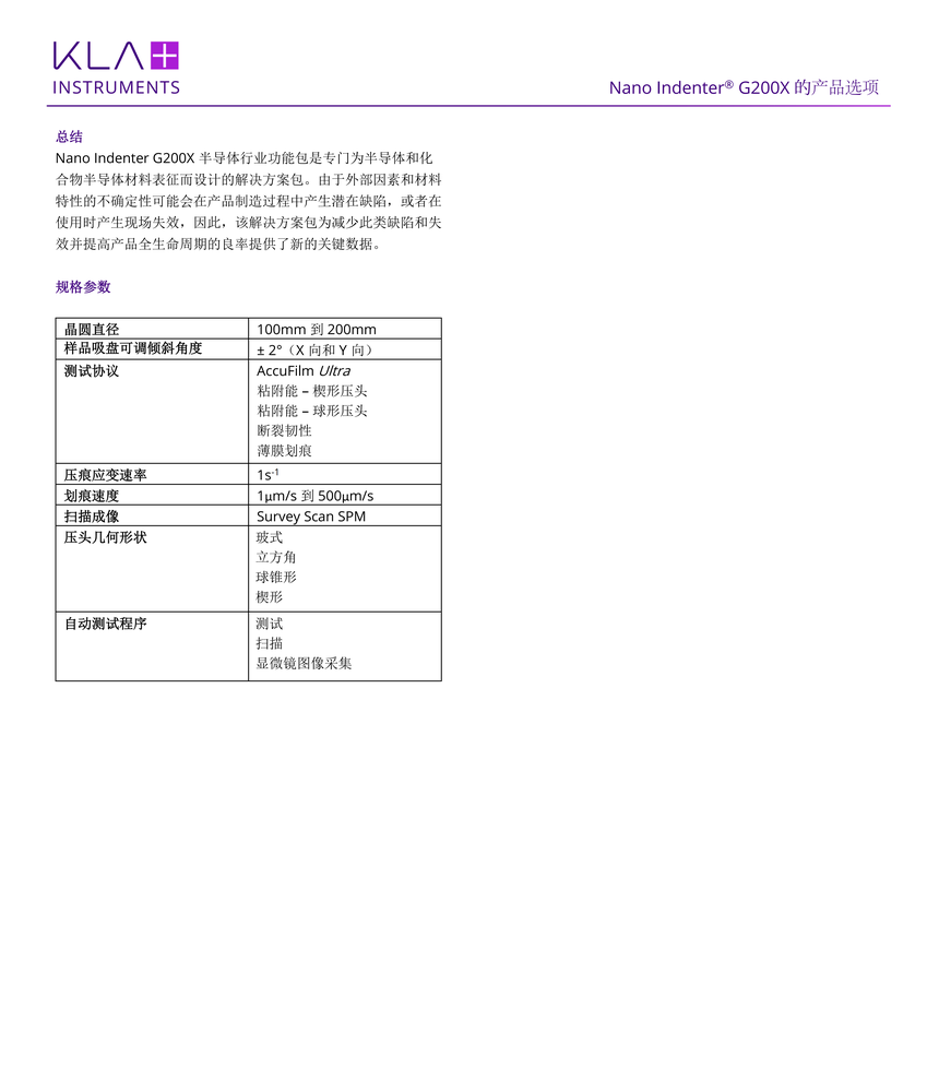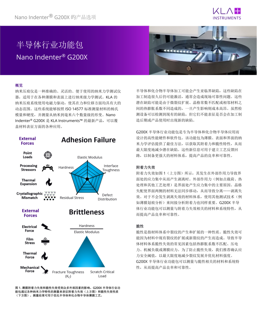 產(chǎn)品概述:Nano Indenter G200X是一種易于使用的納米級(jí)力學(xué)測(cè)試工具,可快速提供精確的定量分析結(jié)果。G200X系統(tǒng)可處理從硬質(zhì)涂層到軟質(zhì)聚合物的各種樣品,并提供KLA Instruments納米壓痕儀產(chǎn)品線中最全面的測(cè)試套件。